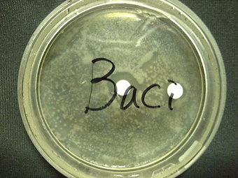 (コントロールとして、抗生物質を染み込ませないペーパーディスクも置いた)