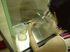 8.ペーパーディスクに調製した抗生物質をしみ込ませる。(無菌的に)