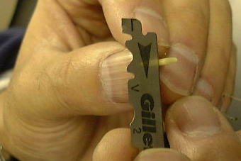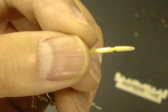 b.先端にアルミ箔のキャップをかぶせたもの(爪楊枝の頭に巻いて作ったものをかぶせる)