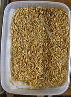 1.タッパーなどに濡れたティッシュを敷いて、麦を蒔く。