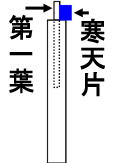 −その2− 先端を切除しても、子葉鞘の内側にある第1葉は伸び続ける。そのまま先端部や寒天を載せても押し出されてしまう。従って、第一葉が伸びないように基部から切断する必要がある。全部抜き取ってしまうと寒天を載せにくいので、一部残しておく。