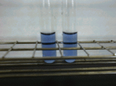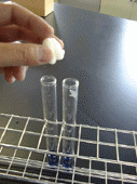 3.もう1本に唾液を数滴垂らして試験官を振る。