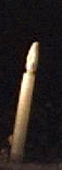 7.切り取った先端を2時間載せておいた1%寒天を、先端を切除し、第1葉を基部から数mm引き抜いて切断したものの片側にのせて、2時間暗中においたもの。ウエントの実験。